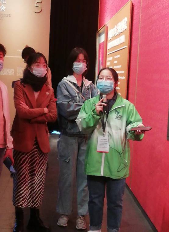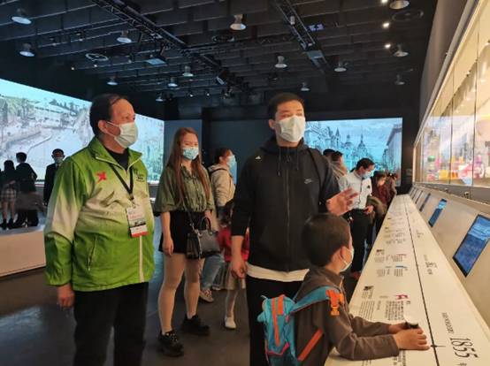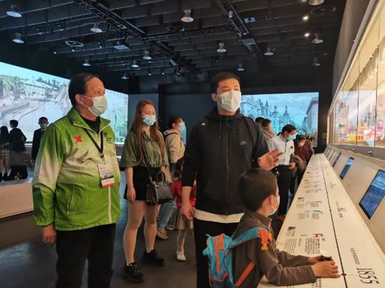 世博馆优秀志愿者讲解员王欲晖参观介绍展厅陈列,带领大家深度解读世博会博物馆