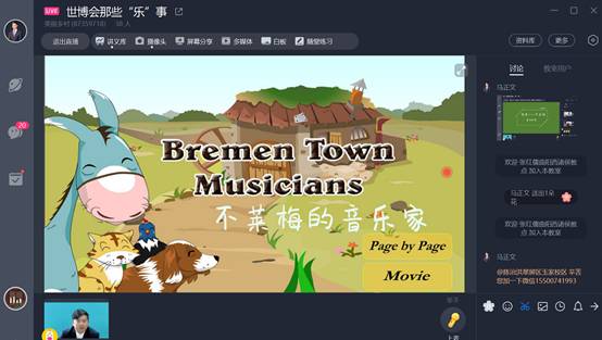 而后,甘肃省天水市甘谷县大石镇河南小学和云南省腾冲市荷花镇佳桥阳光希望小学也陆续加入“世博一刻”直播课。2020年受疫情影响,3所学校共授课51节,参与学生820人。2020年9月1日,世博馆“世博一刻”还与“互+新学堂”教育平台开展合作,每周开课一节。该平台内的学校都可以参与,实现了多地学校同步直播授课。随着同学和老师对课程认识的深入,听课的学校越来越多,学生人数每周都在增加,课程受到了大家的一致好评。截至2020年年底,“世博一刻”在“互+新学堂”教育平台上共授课16节,覆盖全国15个省、市、自治区。
