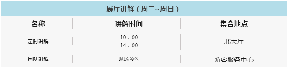 *定时讲解由讲解员/志愿者带领常设展厅参观