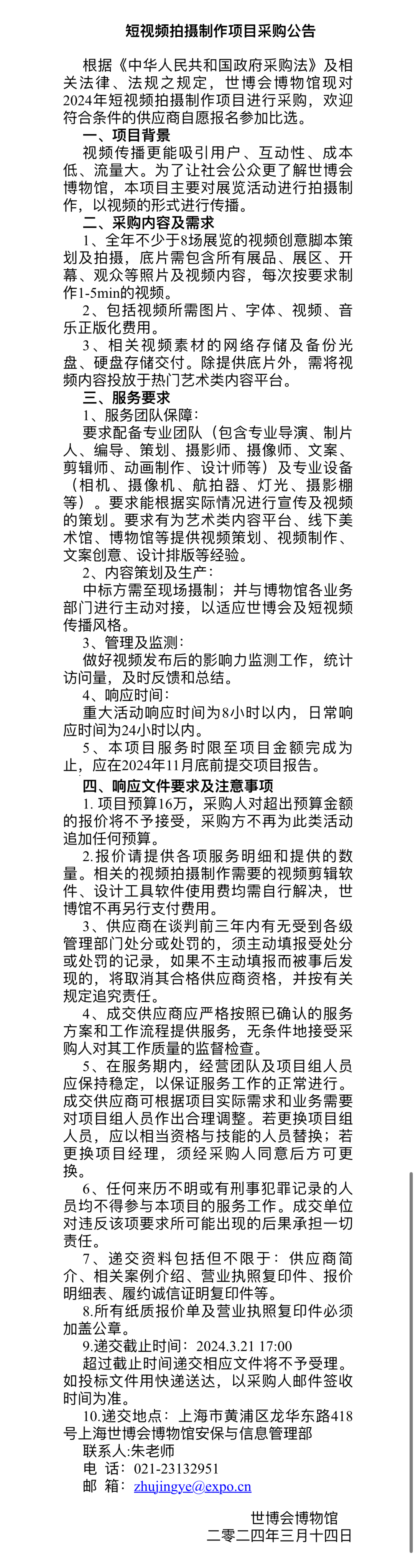 短视频拍摄制作项目采购公告