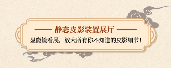 本次「一梦华胥」展览开设的静态皮影装置展厅,让幕后的皮影角色们在台前亮个相,让观众们可以自带“显微镜”看展,去观察那些隐藏在幕布之后的皮影小人们身上的诸多玄机!