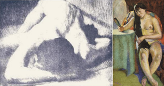 《灯下卧男》1929年(左)