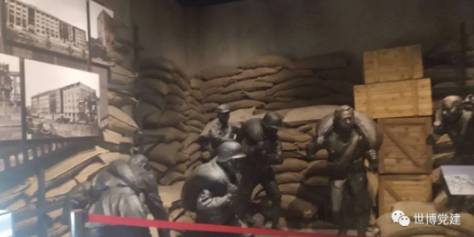 纪念馆位于四行仓库西侧,西山墙上还有战后留下的弹痕,以及一些枪炮打穿的洞。党员群众们依次参观了序厅、“血鏖淞沪”、“坚守四行”、“孤军抗争”、“不朽丰碑”及尾厅等六个部分。