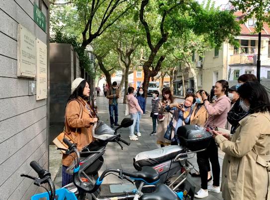 在领队的带领和解说下,第一党支部一行从武康路1号孙家花园起始,路径巴金故居、黄兴旧居、密丹公寓、北平研究院旧址、原意大利领事官宅等知名景点,最终在武康大楼结束了本次城市徒步活动。