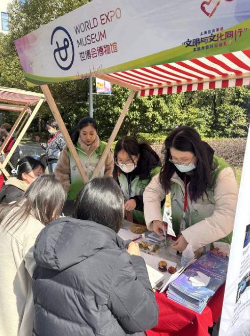 为以更高标准、更优服务回馈社会、履行社会责任,3月3日,世博馆积极参与了在市群艺馆举办的局系统志愿服务展示活动。志愿者们通过在世博馆专属摊位派发宣传手册、印章打卡、展示展馆海报、咨询等服务,充分展示了我馆精神文明实践成果和文化服务特色。而吸引众多社区市民争相参与的世博馆特色项目“手工坊”活动——花悦·框景万千和一支独绣·戳戳画文化免费体验活动,切实让“文明与文化同行”真正走进群众的“心窝里”,贴心服务“零距离”。