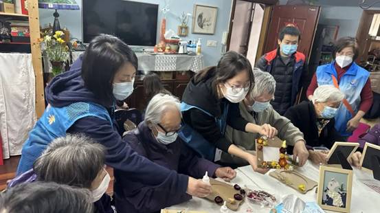 活动中,世博馆志愿者们将温情贴心的文化服务送到老人的家门口,大家一对一地教授老人们用鲜艳的干花制作专属于自己的独一无二的花艺相框,大家边制作,边讨论,在欢声笑语中,老人们感受到手工制作带来的美好体验,他们纷纷表示“这次活动老开心的,让我们老年人开动脑筋,又锻炼了动手能力,希望世博馆多多把这种文化体验服务带来,让我们老年人的退休生活多点乐趣”。