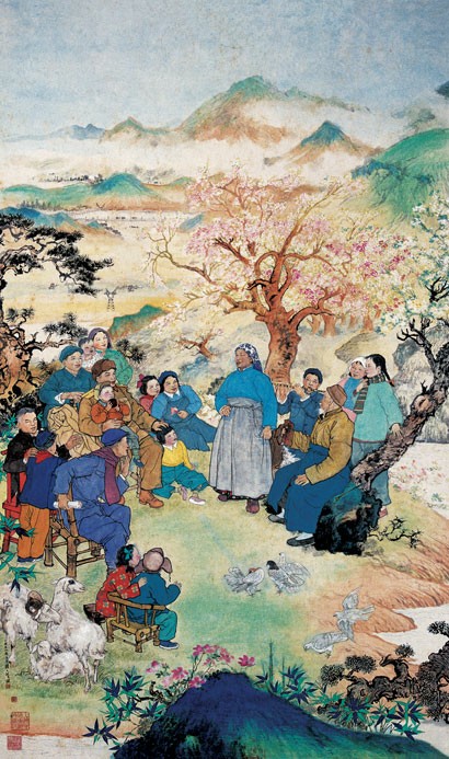 最近正式上线的上海中国画院数字博物馆展示的珍贵画院藏品,程十发创作于1956年的《歌唱祖国的春天》