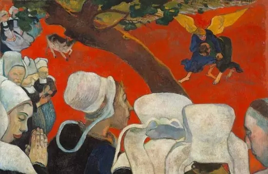 在田园牧歌的风景的掩映下,在性感原始的女性肉体上、在象征性的动植物形象外,高更在庆祝他那未受污染的异国世界的理想。高更的画作一直在传达自然和文化,神秘主义和情色,梦想和现实之间的一个特殊的和谐。