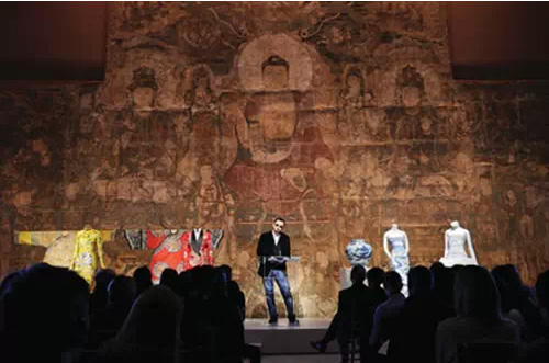 为配合纽约年度时尚盛事MetGala和亚洲艺术部成立100周年,大都会艺术博物馆5月7日起举办了题为“中国:镜花水月”的展览。展览由该馆服装艺术部和亚洲艺术部联合举办,亚洲艺术部为这次展览提供了全部展厅作为展示时装的场地,其中最引人注目的是早期中国佛教艺术阿瑟•赛克勒展厅。这个亚洲艺术部最大的展厅里容纳了元代壁画巨制《药师佛会图》、龙门石窟浮雕《北魏孝文帝礼佛图》、响堂山石窟佛、菩萨头像、佛手、天龙山石窟菩萨头像以及一座被学界公认为北朝造像碑艺术之最的李道赞率邑义五百人造像碑。展方邀请著名电影导演王家卫出任艺术总监,旨在“将高级时装与中国服饰、书画、瓷器以及包括电影创作在内的其他艺术形式对照展陈,借以呈现中国意象的迷人回响。”(大都会网站语)