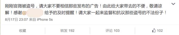 某博物馆微博被第三方应用劫持发送广告之后,被热心粉丝及时提醒,很快就删除了广告并排除了隐患