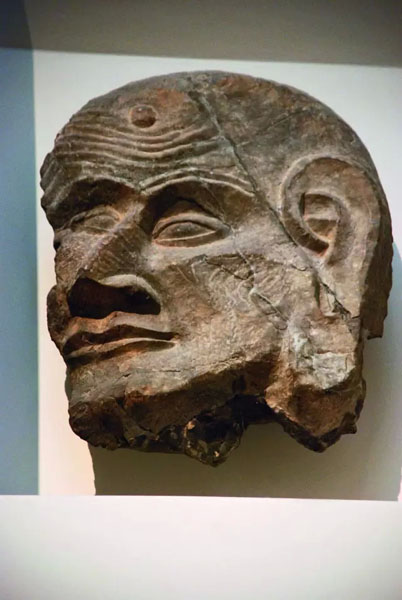 ▲饱经沧桑的迦叶头像,原为洛阳龙门石窟的石刻佛像