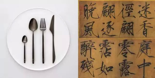 台北故宫推出的取材自宋徽宗瘦金体书法的极简风格的西餐具