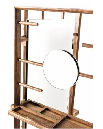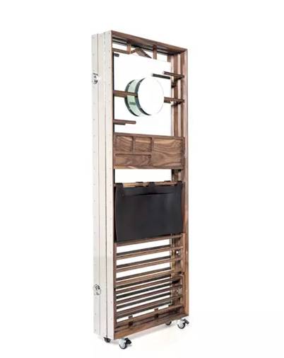 Naihan Li 带来的这款设计是可移动可以折叠的衣架。这是来自中国设计师的设计,利用了胡桃木、镜面抛光不锈钢制作而成。展开来它是个多功能实用的可移动衣架。不需要时可将它折叠成一扇门的形状,完全不占用空间。Naihan的设计不仅仅是家具本身,这是一个概念的生活方式。