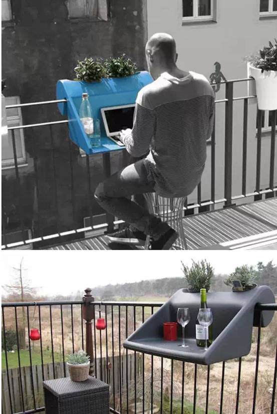 这是一款名为Balkonzept的多功能塑料创意小桌子,我们可以利用它实现很多功能,例如种种花草、放笔记本电脑、吃一些小甜点或者当做工具架,最重要的是它能够非常方便的固定在阳台的护栏上。遇到阳光明媚的天气,不妨带着笔记本出来晒晒太阳。