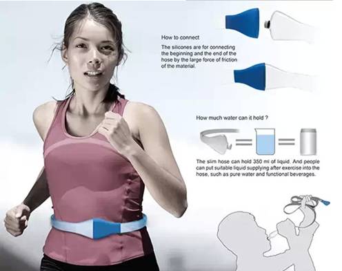 运动的时候最需要的就是能够及时补充水分,让燥热暂时被压住。但是,市面上的运动水壶往往不能够满足便携的要求,所以设计师 Yuan Peizhuo 和 Jin Huijian 便想出了非常有创意的腰带式水壶的点子。使用者不仅方便在跑步时携带还方便饮用,350毫升的水也足以满足普通运动爱好者的需求了。