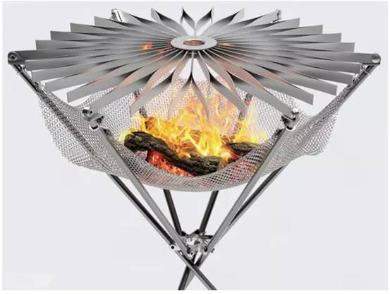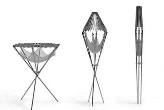 采用优质的不锈钢为材质,FormAxiom的三位设计师创建了便携式和轻量级的折叠烧烤架:GRILLO。三位设计师在大量的探索后,最终应用了独特的伞式折叠方案 ,因此GRILLO可以通过推、收的方式折叠或打开;而烧烤架的灵感则来源于花朵,如同一朵绽放的向日葵。