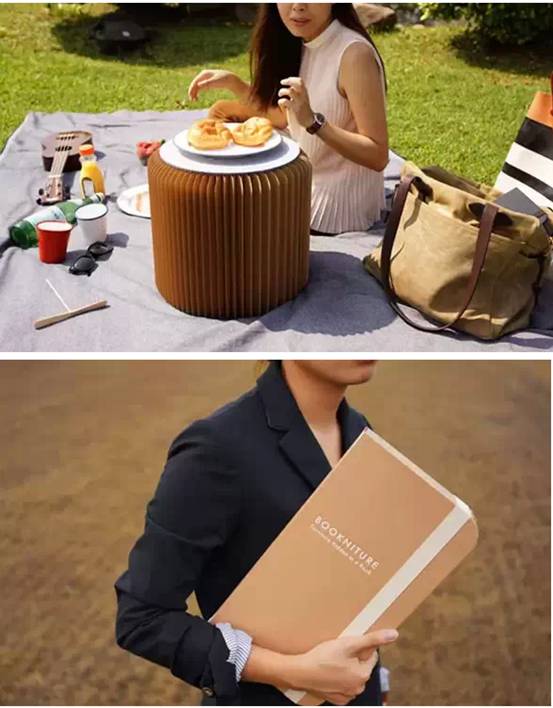 BOOKNITURE是一款便携的可折叠创意家具设计作品,它利用牛皮纸和独特的折叠结构能够轻松的撑起一个标准身材的人,最重要的是它折叠起来的时候真像一本书一样小巧,也就是说设计师们的确已经让BOOKNITURE的结构经受住了考验而且十分有创意。