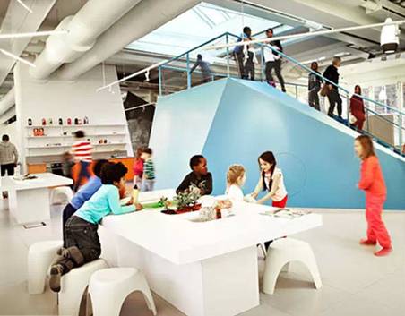 这所位于瑞典斯德哥尔摩的综合学校没有传统意义上的桌椅黑板教室,而是为充满乐趣的开放性与交互性空间所代替,多彩多姿的室内装修让学校俨然成了一座游乐园,学生们自由地创作学习并与人交流沟通,帮助孩子们开阔眼界,激发创造力。