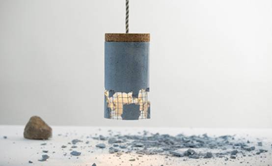 这个看起来破破烂烂的吊灯叫做斜线灯,出自设计师 Dragos Motica 之手,造型别具一格,制作材料几乎全部出自建筑工地:混凝土的灯罩、钢筋结构、吊索。更任性的是,这灯罩上的混凝土本是完整的,为了扩大照射范围,设计师干脆用石头砸出来一片光明。