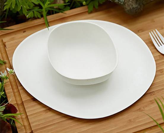 这套盘子和碗,看起来光滑无比,形状像是卵石,但这套餐具的制作材料却是蔗渣,蔗渣是甘蔗的副产品,是唯一的最易得到的可生物降解材料,这样的有机再生材料制成的卵石状蔗渣餐具组合(Pebble Bagasse Collection),让人不忍拒绝。