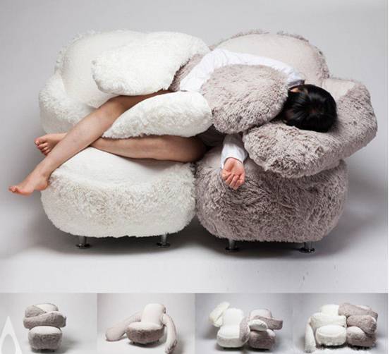 自由拥抱沙发(Free hug sofa Sofa)像是一只张开了臂膀的大熊,韩国设计师 Eun Kyoung Lee 同样是个女孩,也许女孩天生缺乏安全感,这样的熊抱模式的沙发很容易得到女性的青睐,也更适合儿童,他们或许可以感受到母亲怀抱的温暖。