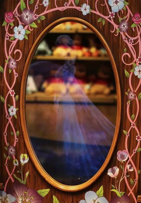 在魔法森林区域内还有一块“魔镜”,当有人经过,迪士尼的公主就会出现在魔镜内同你说话。如果有小朋友在迪士尼商店内庆祝生日,他们还能在镜子里“遇见”米奇和米妮。