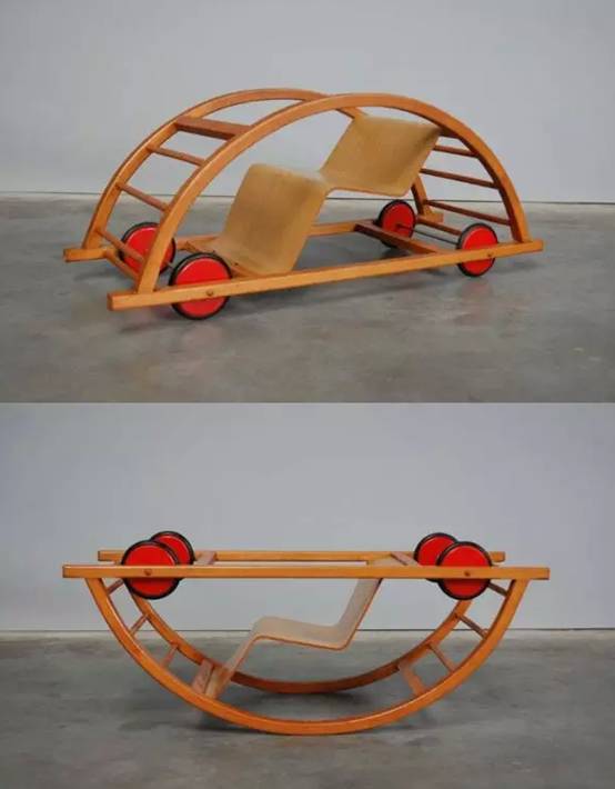 这款产品非常有名,正面四脚着地是个玩具汽车,翻过来四脚朝天是把摇椅。结构并不复杂,可玩性却非常高,加上两种玩法,小朋友们一定喜欢。