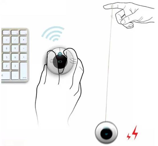 这是个俏皮的鼠标设计概念,因为它的耗电会比较快,所以会经常迫使你不得不时不时的甩一甩溜溜球鼠标,以此来给鼠标充电续能。而在简单的手部运动过程中,不知不觉也让手部和肩膀重新焕发活力。
