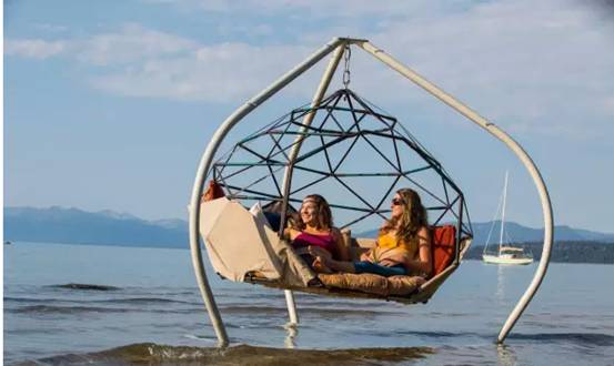 Kodama Zomes这个可以被看做是吊着的巨大鸟笼的吊床亮相于今年的Dwell on Design设计展,这个吊床的四周被钢结构围上,更具安全感,而且内部的垫子和圆形的空间,不论是躺是坐都很舒适。外部的钢架不但可以保护里面人的安全,还可以被罩上各种材质的套,用来放水或者防蚊。