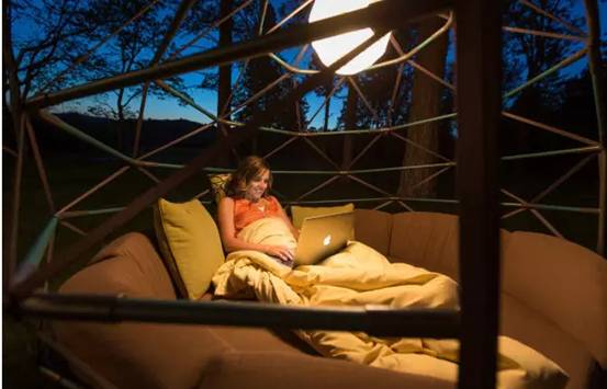 夏夜最美的一种享受就是躺在草地上数星星,凉爽、梦幻,设计师Richie Duncan希望可以将这种享受变得更加舒适安全,不如来个睡笼,吊在半空睡觉。