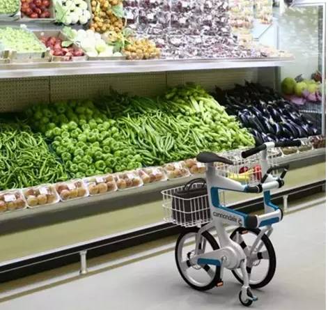 仅从外观上而言,这款自行车的优雅外观已经让人喜欢,特殊的框架结构是为了更方便折叠。从家里踩着自行车到达超市,无需找地方停自行车,只需简单的几个步骤,你就可以轻松把它折成一款漂亮的购物车,直接就可以推着进超市选购商品。无论是蔬菜、水果,还是其它商品,都很好摆放。比起自带购物袋的环保购物方式,这款自行车更加环保以及方便。