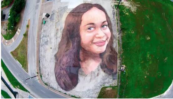 艺术家Jorge Rodriguez-Gerada日前在美国的德克萨斯州圣安东尼奥市分享了他的最新“陆地系列”人物肖像作品,肖像作品规格大小有30×46m,无论是从高空还是从远处地面都可以看清整件作品,人们还可以亲自行走在这幅巨型肖像画上。