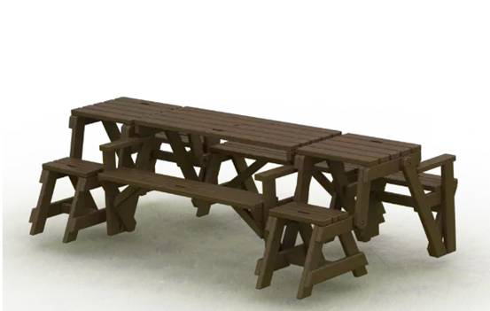 该款产品是由美国著名设计师 Kenneth Perez 设计的,暗藏在椅子中的玄机就是椅子可以变形。像图片中所示一样,它可以变身成一款桌椅一体的就餐桌,无论是家中使用还是外出野餐都是一个很好的选择。