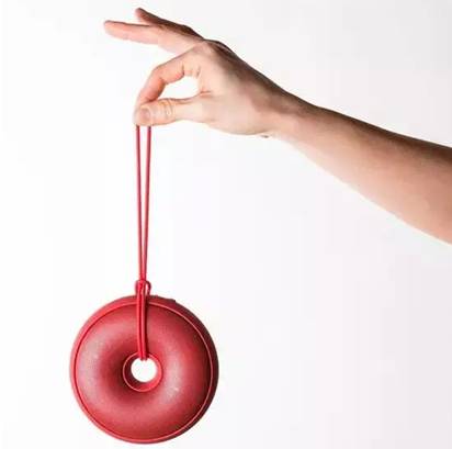 像甜甜圈一样的蓝牙音箱HOOP,大小和一张CD差不多,可以随身携带,也可以挂在墙上,由意大利设计师Valentina Del Ciotto 和 Simone Spalvieri 为LEXON设计。