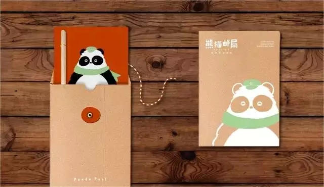整个熊猫形象以憨态可掬而又柔软的熊猫造型为主体,再加上邮递员的帽子(职业)、围巾(温暖)点缀,突出了邮局这一特质。