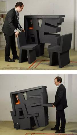 从一块板变为一件家具。建筑师Robert van Embricqs似乎很热衷于用线面元素去构建造型,并且他的“Rising”系列家具无一例外可以借助其结构来变形。隐藏百变家具这些家具正可谓你要具备火眼金睛才能发现这其中的奥秘吧。