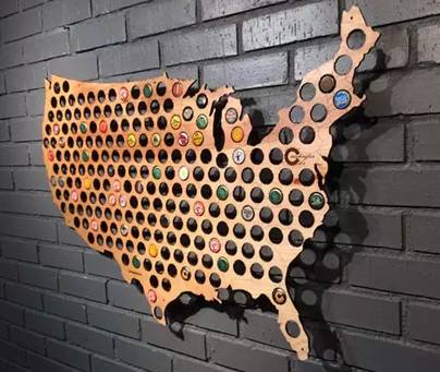 木质啤酒盖地图。送给爱喝酒的他,让啤酒盖成为艺术品。