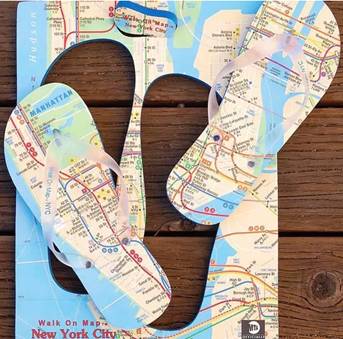 纽约地图人字拖。穿上地图人字拖,走在纽约的大街小巷。