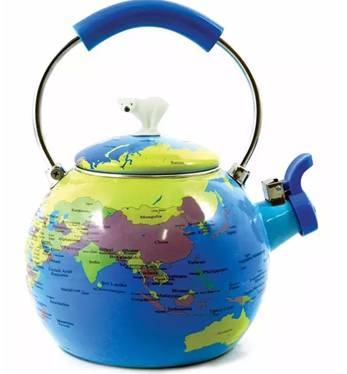 世界地图水壶。壶盖上有个可爱的北极熊。
