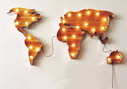 其他一些地图元素的灯具,也十分美丽。如折纸地图灯罩。灯光摇曳,照亮整个世界。