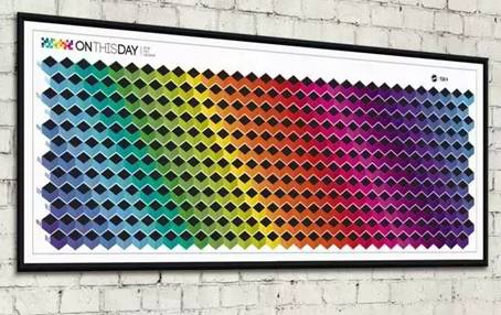 这个日历看起来像误入了时光机也不是没有道理的,日历上的小黑方块全都是热敏材料制成,用手一触摸就会变色,显示历史上的今天发生的大事件。比如 1 月 27 日这一天,你就会惊奇地发现 1880 年的同一天爱迪生发明了灯泡。当方块上的余温消退,中间又会变回黑色。