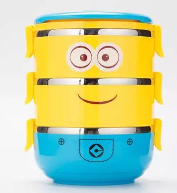 小黄人们个个都是吃货,不知道把它们变成便当盒,它们会不会看着里面的食物眼馋。这款保温盒外层塑料不怕摔,内层无磁不锈钢。首层密封性能好,中层和底层是不密封的,可以装些小水果,层与层之间有卡扣连接。