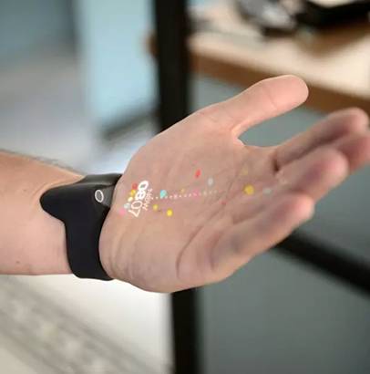 造型酷似金字塔的它,不仅可以摆在桌子上当钟表,也可以戴在手腕上当手表,时间会投影在你的手心。