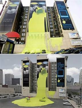 广告已经无处不在,从街头公交到马路,再到商场电梯,无孔不入。而设计师也显然已经玩得乐在其中了。