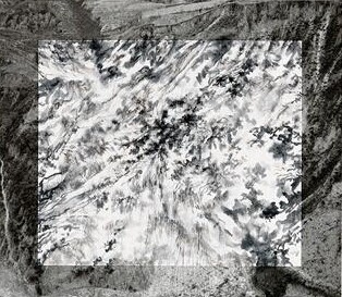 麦(Michael Cherney,美国,1969年生)、张洪(Arnold Chang,美国,1954年生),《边界线》(Borders),2013。喷墨印刷摄影与纸上水墨画。