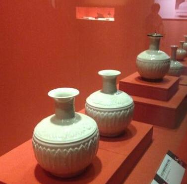 清代部分,由于西方国家的东印度公司在瓷器贸易中占据主导地位,这部分展品即以外销欧美的器物为主,很多制品有着浓郁的异国情调,反映了当时贸易瓷器的时代变迁。如上海博物馆藏景德镇窑青花果树纹油醋瓶,烧制于清康熙年间(1662~1722年),整器造型新颖,是典型的订烧器,是直接仿当时欧洲流行的玻璃器制成。又如故宫博物院藏景德镇窑广彩徽章纹盘,烧制于清乾隆年间(1736~1795年),器形规整,色彩绚丽。徽章瓷是明清时期中国外销瓷中最具特色的品种。这些绘有家族、宗教或军事团体、城市和各类组织机构徽章的瓷器,均来自西方人的特别订制。