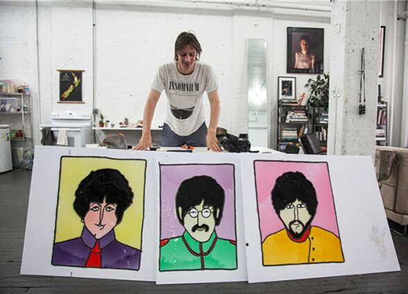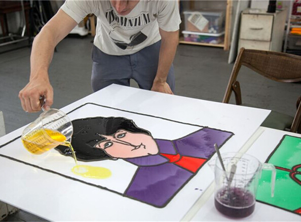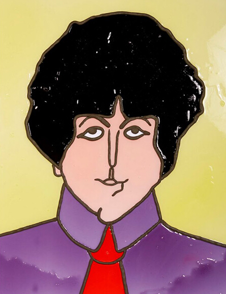 哈格里夫用黄色液体凝胶为保罗·麦卡特尼的肖像画上色
