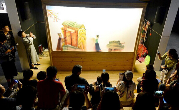 (2)9月20日,参观者在中国美院民艺博物馆观看皮影戏。