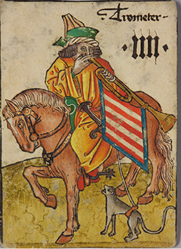参展的这三付手绘扑克牌是由来自不同地方的多位艺术家制作的。尽管每付扑克牌各有特点,但它们的图片都与打猎相关,打猎是中世纪贵族最喜爱的休闲活动。通过绘画的高质量以及扑克牌的良好状况,我们可以看出这些奢华的纸盘很少被拿出来玩。更准确地说,它们可能只是收藏家的藏品。