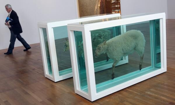 熟悉当代艺术的人一定对于达明·赫斯特的传奇故事了若指掌,他把动物切成两半,泡在福尔马林溶液里面,然后卖出天价。这类作品成了他的标签,已经成为载入艺术史的符号。
